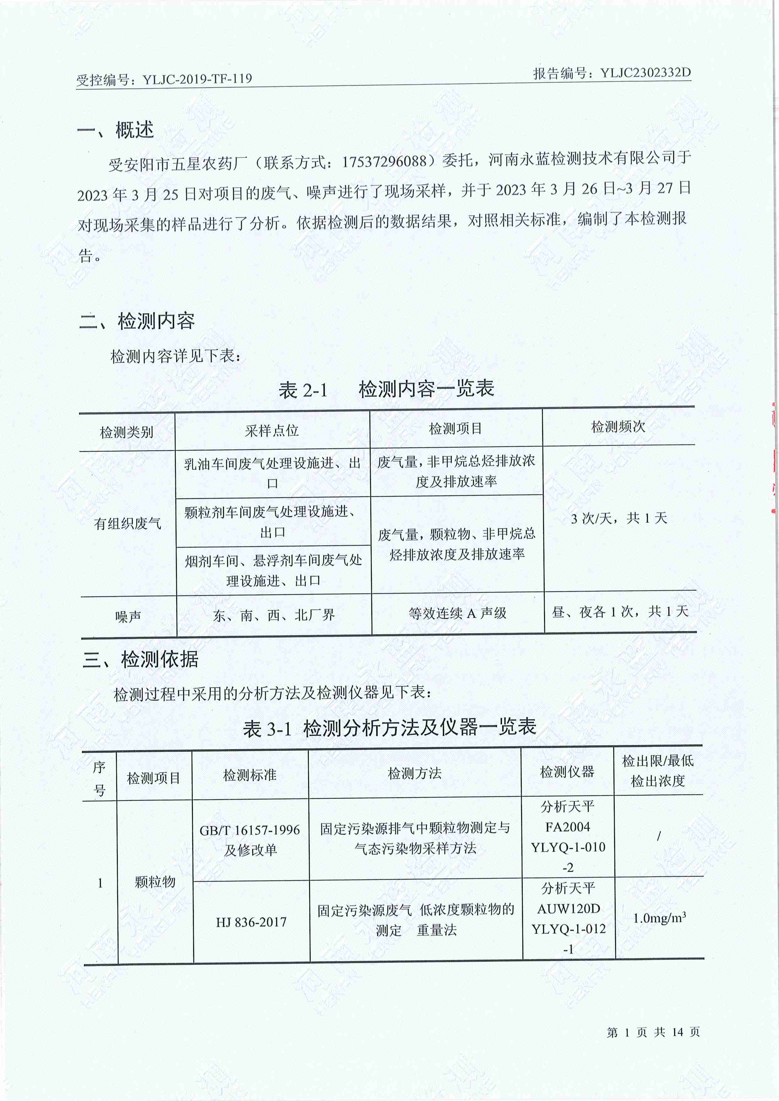 五星農(nóng)藥廠環(huán)保公示2023年1